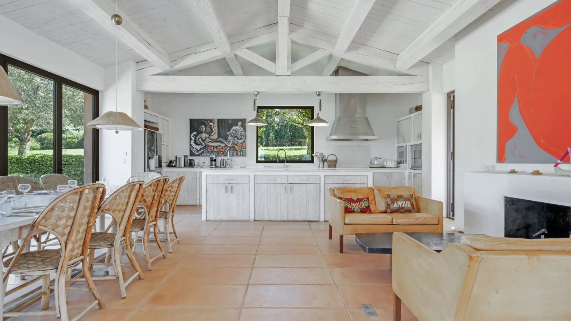 This prestigious property combines Mediterranean elegance, generous living spaces, and modern amenities for an exceptional stay. Perfect for large families or groups of friends, it features welcoming living areas and an ideal layout with a main house, a guest annex, and a staff house.