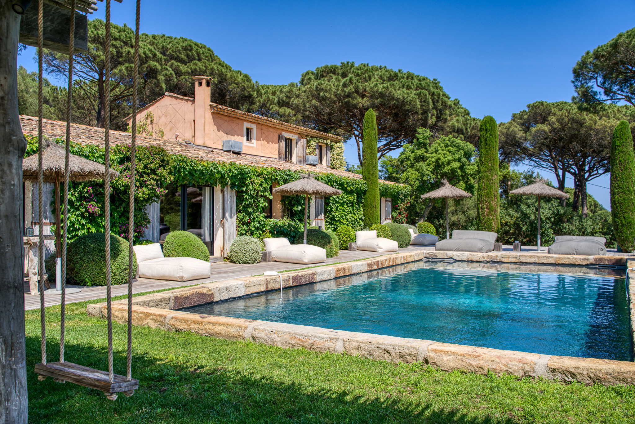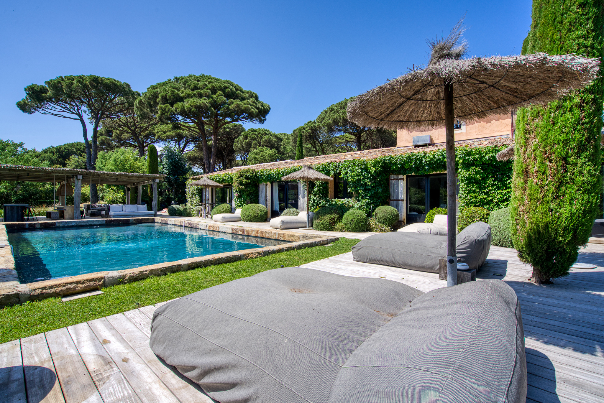 Située à proximité de la route des plages et à quelques minutes des plages de Pampelonne, la Villa VIGNA – La Villa Pinède est une véritable ode à la convivialité et aux instants partagés. Cette villa de prestige à Saint-Tropez conjugue charme provençal, élégance contemporaine et équipements modernes pour un séjour d’exception.