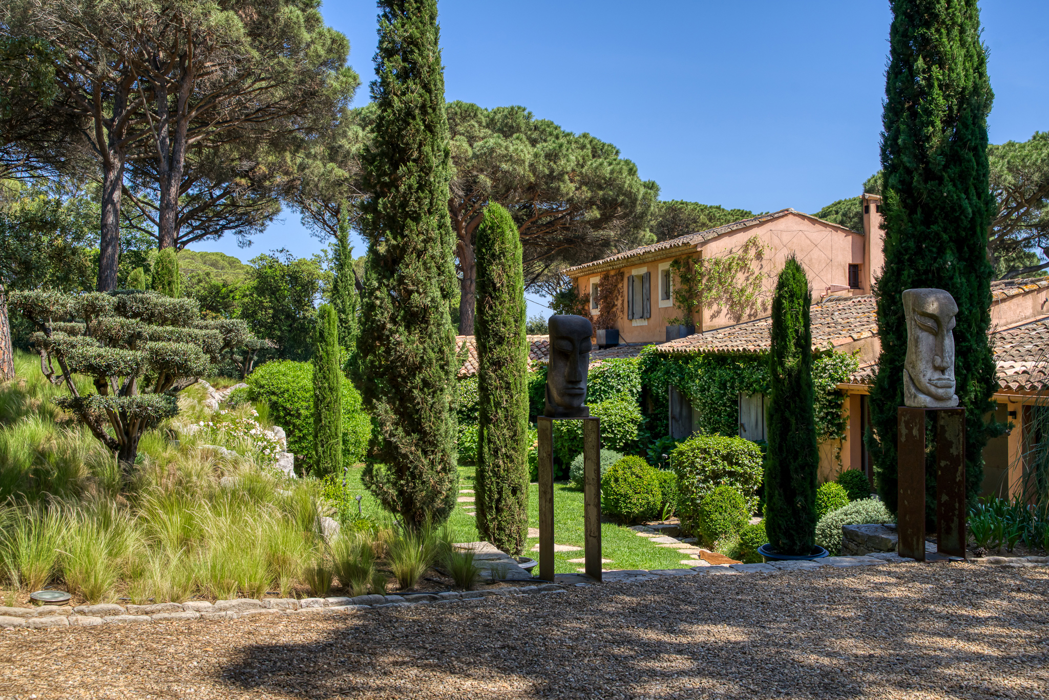 Les jardins, agrémentés de vigne vierge, bougainvilliers, jasmin et essences méditerranéennes, renforcent la douceur de vivre et l’intimité de la propriété.