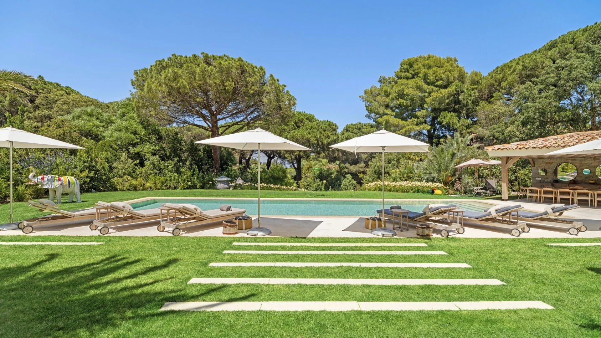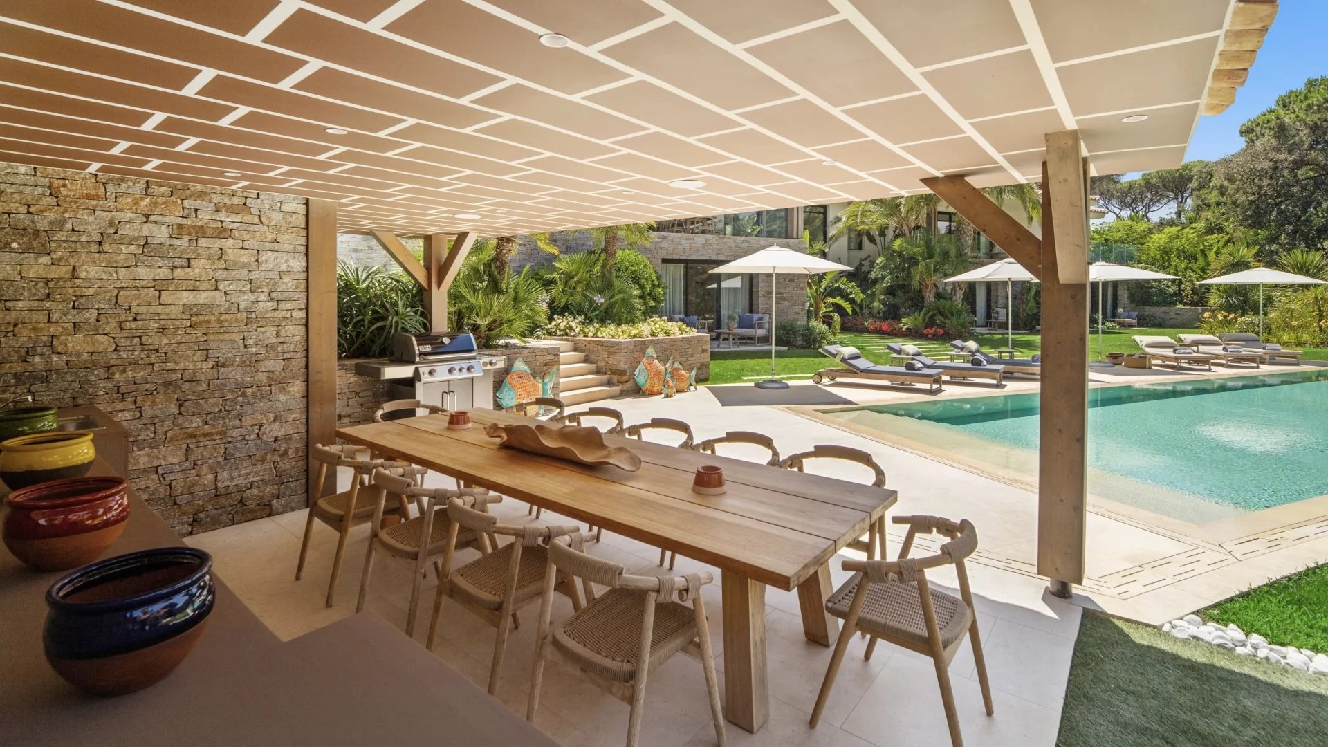Villa contemporaine de luxe à Saint-Tropez, 650 m², pouvant accueillir 10 adultes et 2 enfants.