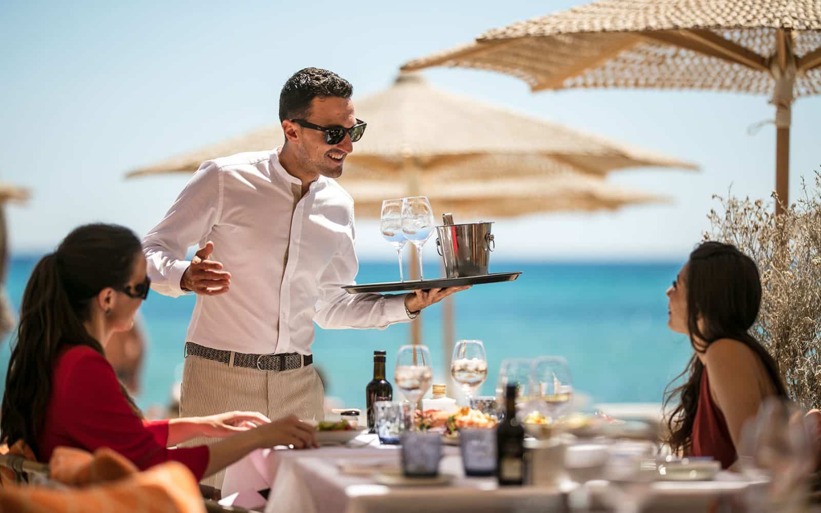 Byblos Beach – Plage privée à Pampelonne, RamatuelleSituée sur la mythique plage de Pampelonne à Ramatuelle, Byblos Beach incarne l’esprit et le raffinement de l’iconique Byblos Saint-Tropez, dans une version les pieds dans le sable. À seulement quelques minutes en voiture du palace tropézien, cette plage privée offre une atmosphère chic et décontractée, où élégance, musique lounge et art de vivre méditerranéen se rencontrent face à la mer.Véritable extension de l’hôtel Byblos, Byblos Beach Pampelonne séduit par son ambiance intimiste et son service irréprochable. Le restaurant de plage propose une cuisine méditerranéenne éco-responsable, mettant à l’honneur les circuits courts, les produits locaux et les ingrédients de saison. Poissons fraîchement pêchés, fruits et légumes gorgés de soleil, recettes créatives et équilibrées composent une carte raffinée, pensée pour évoluer au fil des saisons. Le restaurant peut accueillir jusqu’à 120 convives, installés confortablement sous des ombrières évoquant les voiles de bateaux.Pour une expérience encore plus exclusive, les clients peuvent profiter du service sur transats. La plage dispose de 110 larges bains de soleil, abrités par des parasols en corde, créant une atmosphère de paillote luxueuse typique de Pampelonne. Face à la mer turquoise et aux activités nautiques emblématiques de la baie, Byblos Beach est une invitation permanente au farniente et à la détente.Sous la direction attentive de Loïc Lost, chaque détail est orchestré pour offrir une expérience digne d’un palace, directement sur le sable. Accueil personnalisé, confort absolu et sens du service font de Byblos Beach Ramatuelle l’une des plages privées incontournables de Saint-Tropez.Idéale pour un déjeuner gastronomique, une journée de détente ou une parenthèse élégante sur la Côte d’Azur, Byblos Beach Pampelonne prolonge avec justesse l’ADN du Byblos Saint-Tropez : un art de vivre unique, cultivé depuis plus de 50 ans.