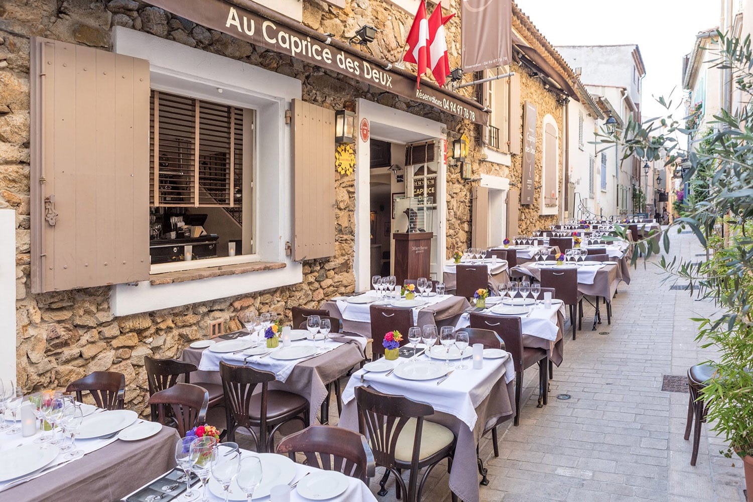 Le Restaurant Caprice des Deux est une adresse emblématique du cœur de Saint-Tropez, où se mêlent authenticité, tradition française et modernité culinaire. Niché dans une ruelle typique à deux pas de la Place des Lices, ce lieu propose une expérience gastronomique raffinée, idéale pour les amoureux de la cuisine méditerranéenne et française de qualité.La carte célèbre les produits du terroir avec des recettes saisonnières mettant à l’honneur la truffe, les escargots, les fleurs de courgettes et d’autres trésors de la Provence. Chaque plat est préparé avec soin par le chef Stéphane Avelin, qui allie créativité et respect du produit, offrant une expérience culinaire unique pour les repas en couple, entre amis ou pour des événements privés.Le cadre du Caprice des Deux combine élégance et confort, avec une atmosphère chaleureuse qui incite à la détente tout en profitant de l’esprit chic tropézien. Les amateurs de bistronomie française à Saint-Tropez y trouveront un équilibre parfait entre gastronomie de qualité et convivialité, faisant de ce restaurant une étape incontournable pour un dîner ou un déjeuner inoubliable dans le Golfe de Saint-Tropez.
