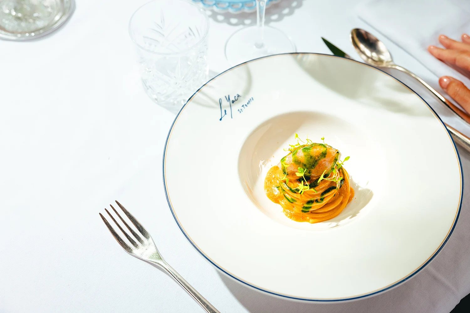 Le Patio Restaurant – Cuisine italienne raffinée au cœur de Saint-TropezNiché au sein de l’Hôtel Yaca dans le centre du village de Saint-Tropez, Le Patio Restaurant est une adresse confidentielle et élégante, prisée des amateurs de gastronomie italienne authentique. Dans un cadre paisible et raffiné, le restaurant offre une expérience culinaire italienne haut de gamme, loin de l’agitation du port.Le chef Mirko Guastadisegni revisite la cuisine italienne traditionnelle avec créativité et finesse, proposant des plats emblématiques tels que les spaghettis « di Gragnano » aux oursins et gambas. Tous les plats sont préparés à partir de produits nobles importés d’Italie et de pâtes fraîches faites maison, garantissant une expérience gastronomique authentique et mémorable.Avant le repas, les convives peuvent se détendre autour de cocktails signatures préparés par le chef barman Christian Sauzeau-Bertin, dans un bar design signé Matteo Gennari, idéal pour débuter la soirée après une journée sur la Côte d’Azur.Le Patio offre deux ambiances : un intérieur chaleureux et intimiste avec sol en marbre noir et blanc et éclairage tamisé, ou un dîner en extérieur autour de la piscine, au cœur du jardin luxuriant de l’Hôtel Yaca. Ce cadre raffiné en fait un lieu parfait pour un dîner romantique ou une soirée entre amis.Avec sa cuisine italienne de qualité, son ambiance élégante et son emplacement au centre de Saint-Tropez, Le Patio Restaurant est une destination incontournable pour les amateurs de gastronomie méditerranéenne et italienne sur la presqu’île.