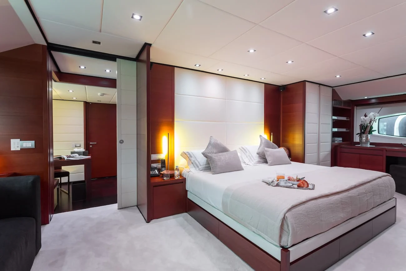 Le M/Y Annamia, Baglietto Yachts, est le parfait équilibre entre design contemporain et confort de luxe, idéal pour une location à la journée ou d’une semaine à Saint-Tropez et sur la Côte d’Azur. Rénové en 2018, ce yacht de 43 mètres a été sublimé par le designer Francesco Paszkowski, offrant des lignes élégantes aux nuances grises et des espaces intérieurs raffinés.