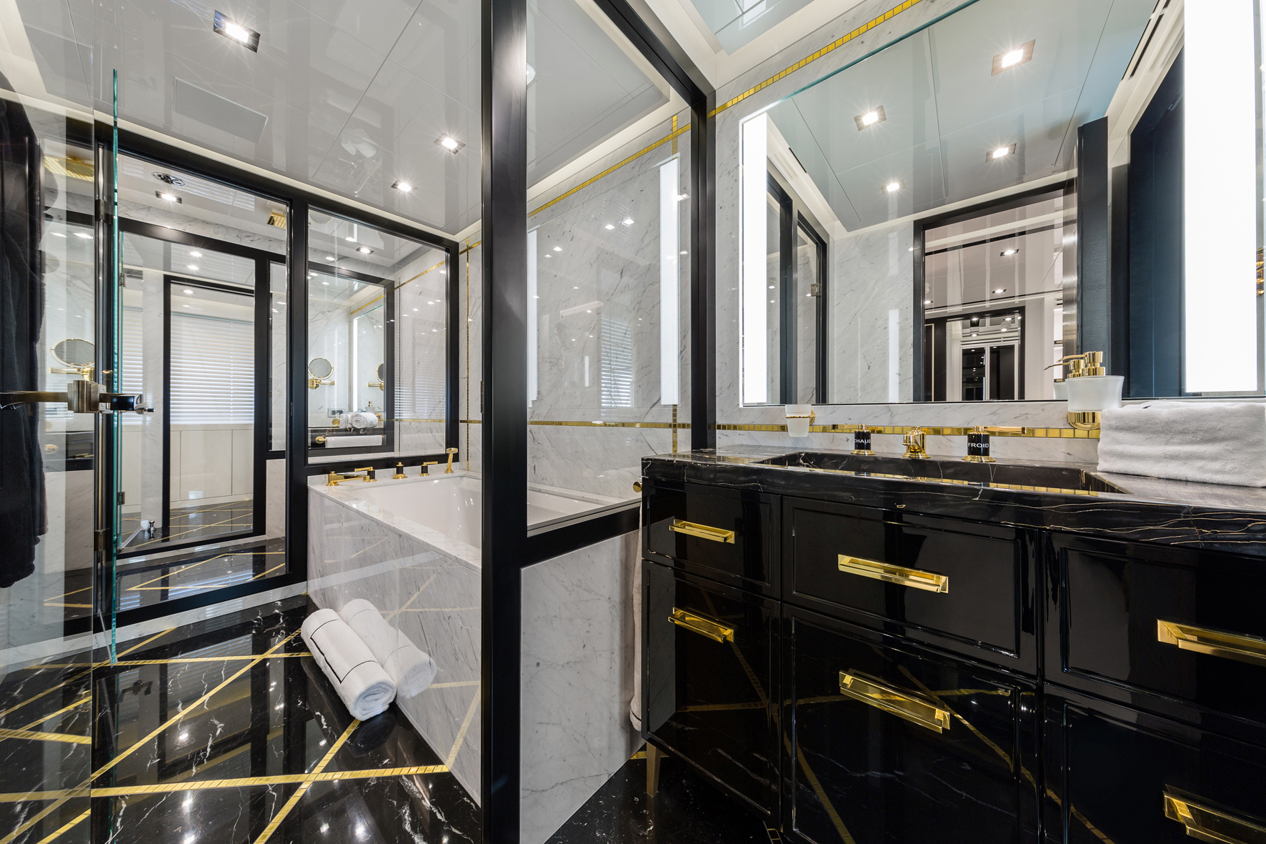 Avec ses 50 mètres de lignes sportives, le Da Vinci offre une navigation rapide et fluide, pouvant atteindre jusqu’à 38 nœuds, tout en garantissant un confort optimal, sans vibrations ni bruits excessifs. L’intérieur, conçu par la designer canadienne Maxine Tissenbaum, mêle miroirs, bois de frêne et marbre Marquina, créant une atmosphère raffinée et chaleureuse pour accueillir 12 invités dans 5 cabines luxueuses. Les salles de bains et le salon disposent de matériaux nobles, tandis que le chef à bord peut préparer des repas gastronomiques pour les convives.