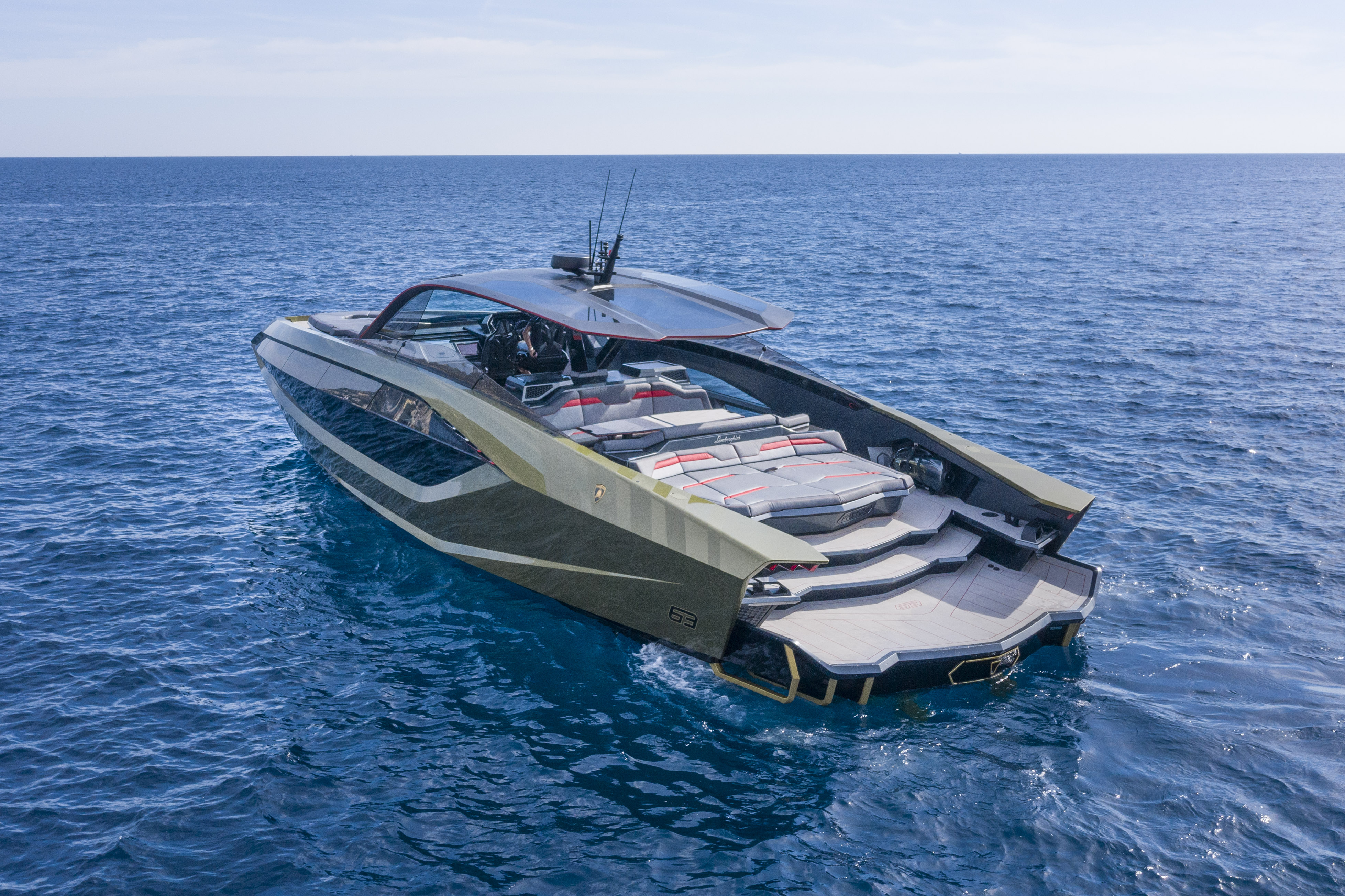 Conçu pour les amateurs de vitesse et de prestige, le Tecnomar Lamborghini 63 se distingue par sa construction ultralégère en fibre de carbone, un matériau emblématique de la marque italienne. Cette conception avancée lui permet d’afficher un poids d’environ 24 tonnes pour 63 pieds, tout en garantissant stabilité, agilité et performances remarquables en mer.