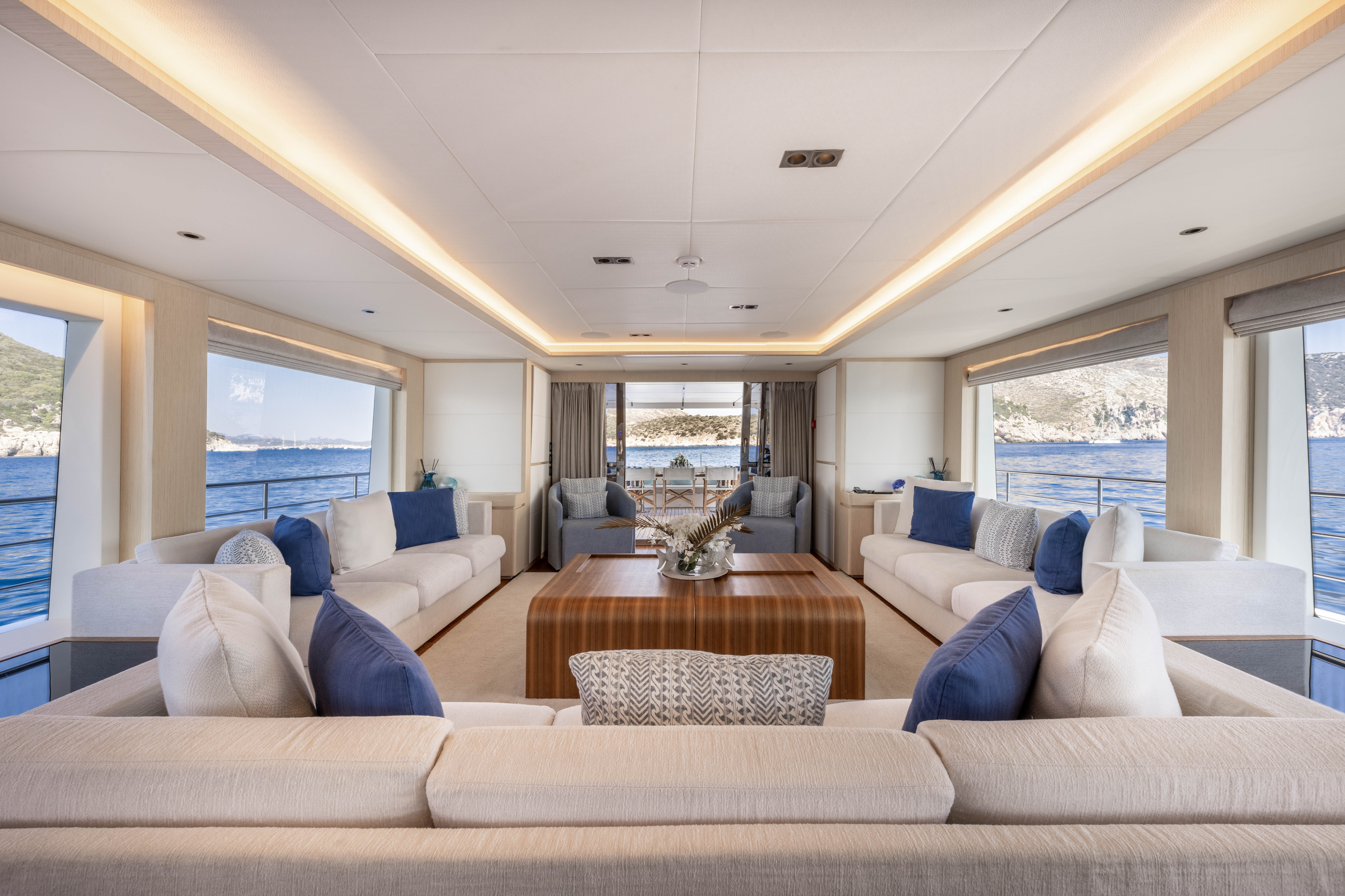 Ses intérieurs somptueux et ses espaces de détente spacieux transportent les invités dans un univers d’élégance et de raffinement, tandis que son design extérieur intemporel et son ingénierie navale de pointe garantissent des performances remarquables en mer. Chaque détail de l’artisanat intérieur témoigne du soin apporté à la conception, faisant du Majesty 100 un symbole de prestige et de raffinement maritime.